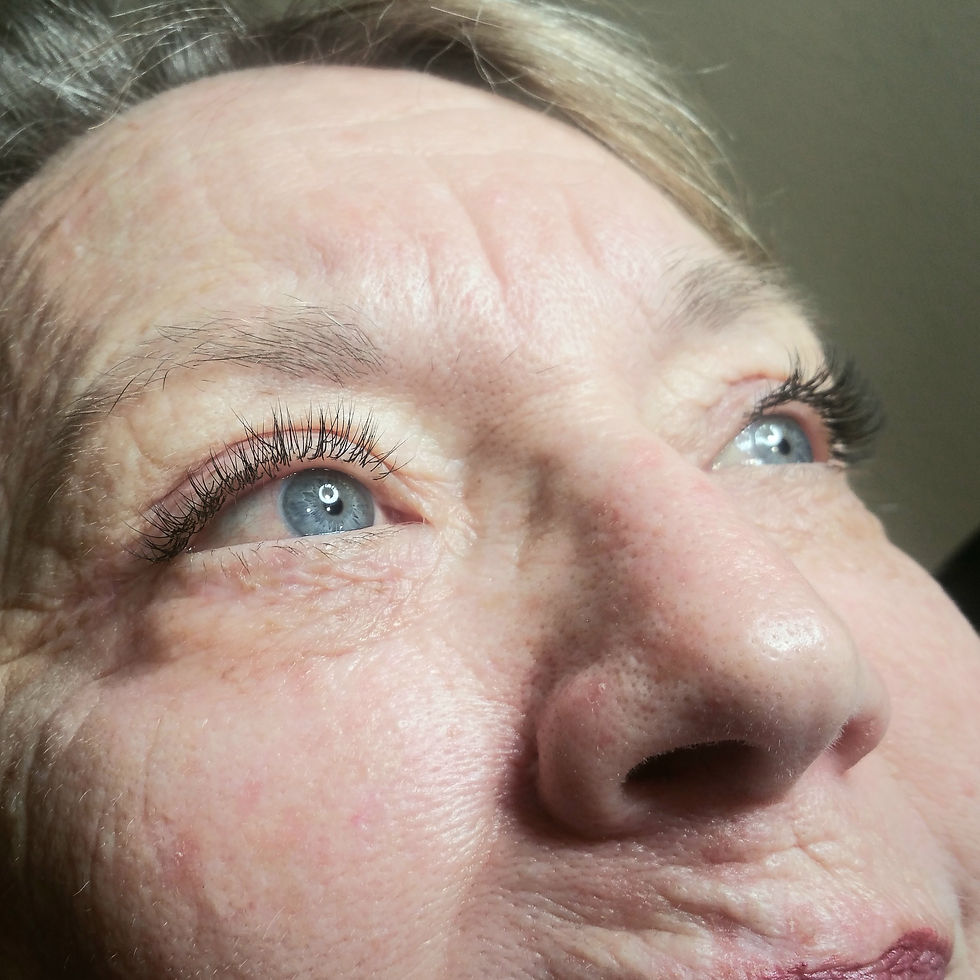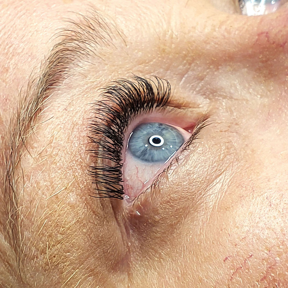 One false lash is adhered to each natural lash until all healthy lashes have an extension creating a better