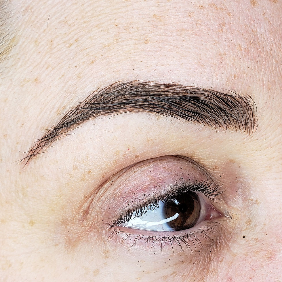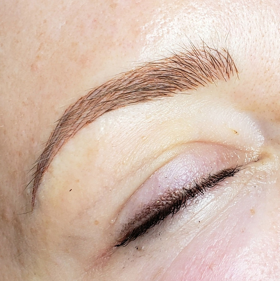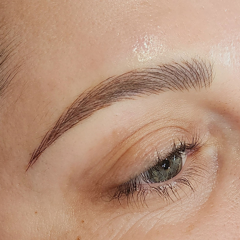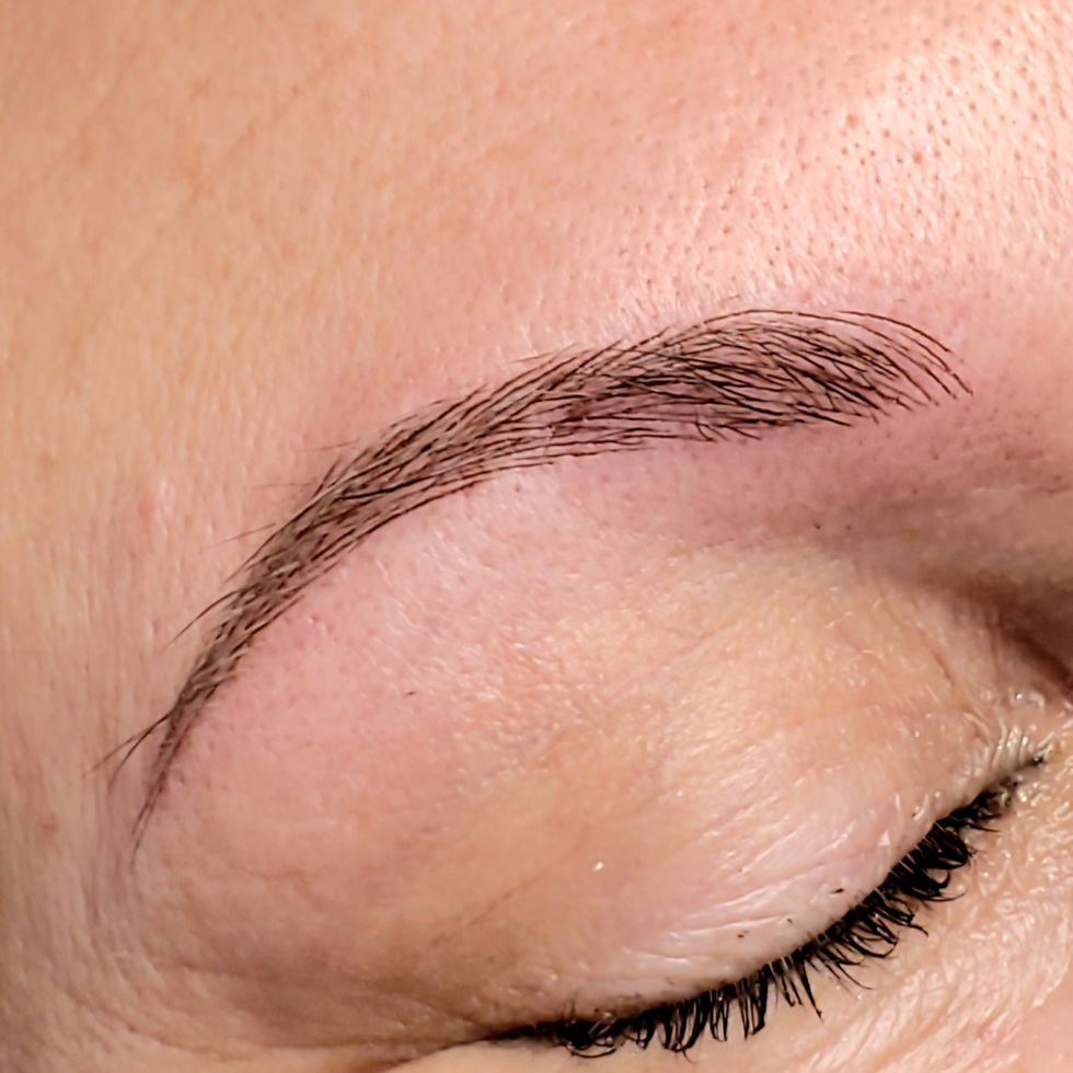 Considered less permanent and less invasive than traditional permanent makeup, this method of cosmetic tattooing uses a manual hand tool (not a machine) to create the finest of hairstrokes resulting in the most natural looking eyebrows. The 100% sterile and disposable tool houses a row of ultra-thin needles that are pulled across the skin, implanting pigment into tiny incisions as fine as your natural hairs. Results typically last 1-3 years. A color refreshing touch-up appointment done every 10- 18 months will keep your brows looking fresh.