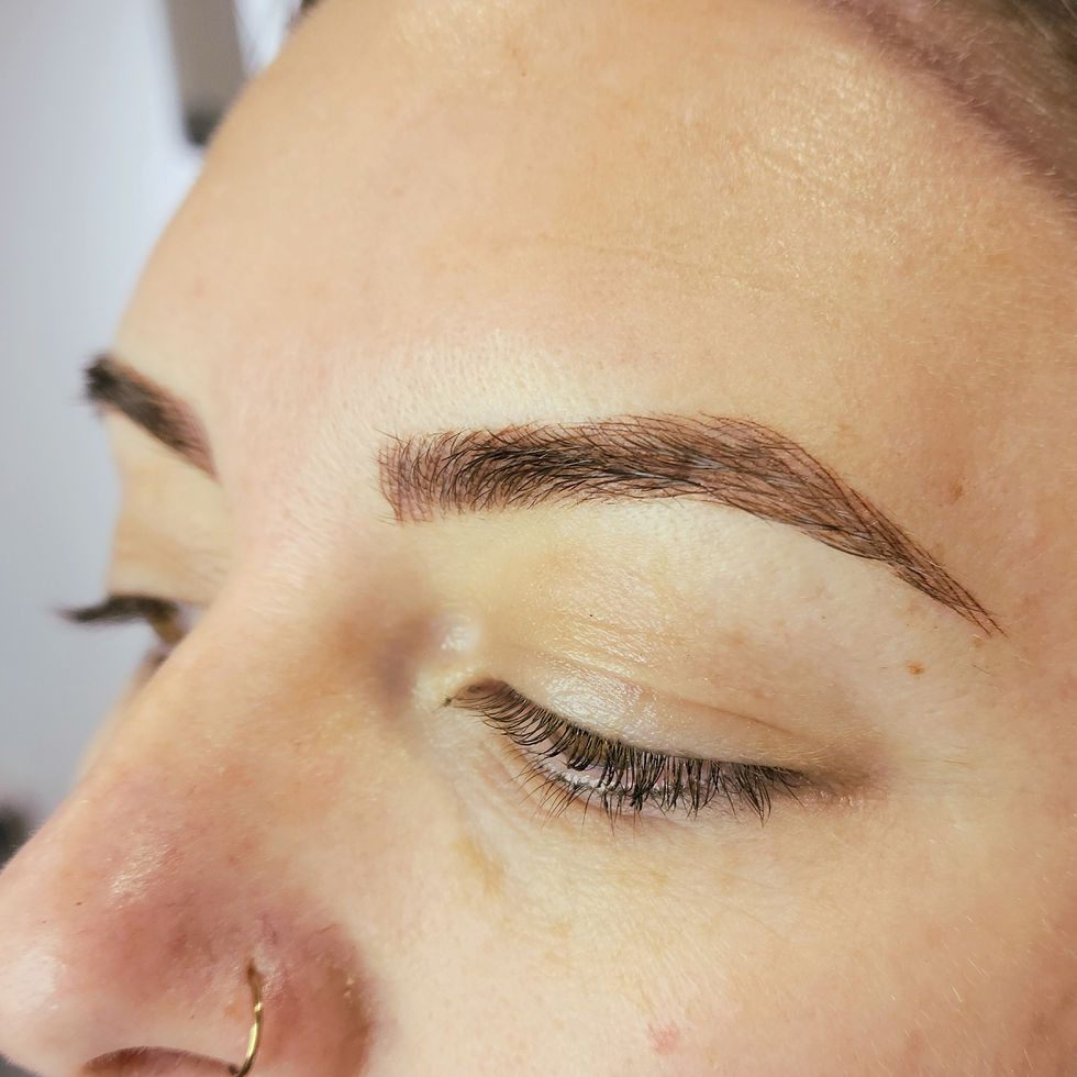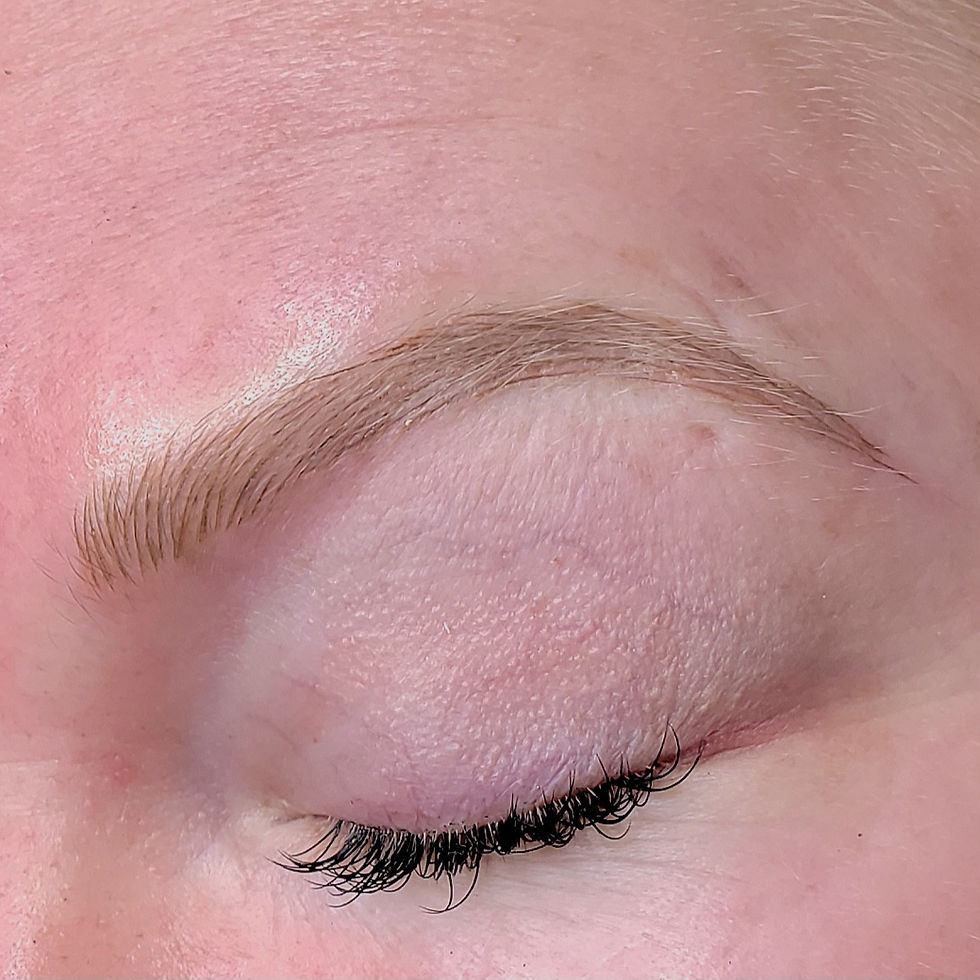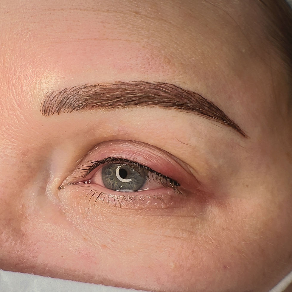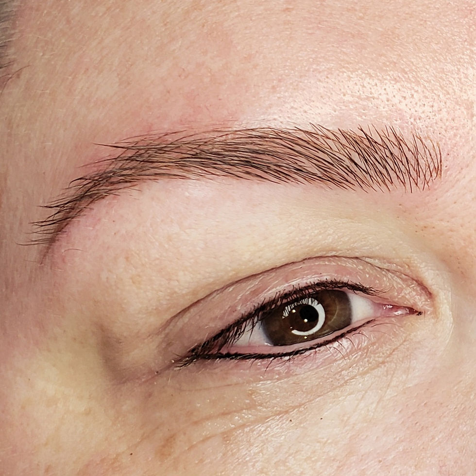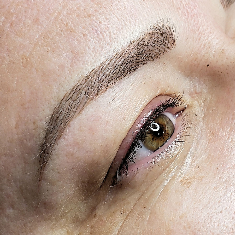 Considered less permanent and less invasive than traditional permanent makeup, this method of cosmetic tattooing uses a manual hand tool (not a machine) to create the finest of hairstrokes resulting in the most natural looking eyebrows. The 100% sterile and disposable tool houses a row of ultra-thin needles that are pulled across the skin, implanting pigment into tiny incisions as fine as your natural hairs. Results typically last 1-3 years. A color refreshing touch-up appointment done every 10- 18 months will keep your brows looking fresh.
