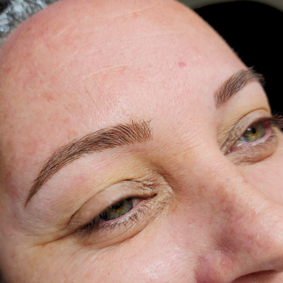 Eyebrows are the focal point of the face. Sparse brows can be made to look fuller and for those that do not have any brow hair, let me create the “perfect brow” to complement your facial features. A powder fill will create the look of brows filled in with make up while the technique of creating hairstrokes and use of multiple colors will create a more natural effect. Combined techniques will create a dimensional look. Results typically last 3-5 years. Color refreshing touch-up appointments done every couple of years, as needed, will keep your brows looking fresh.